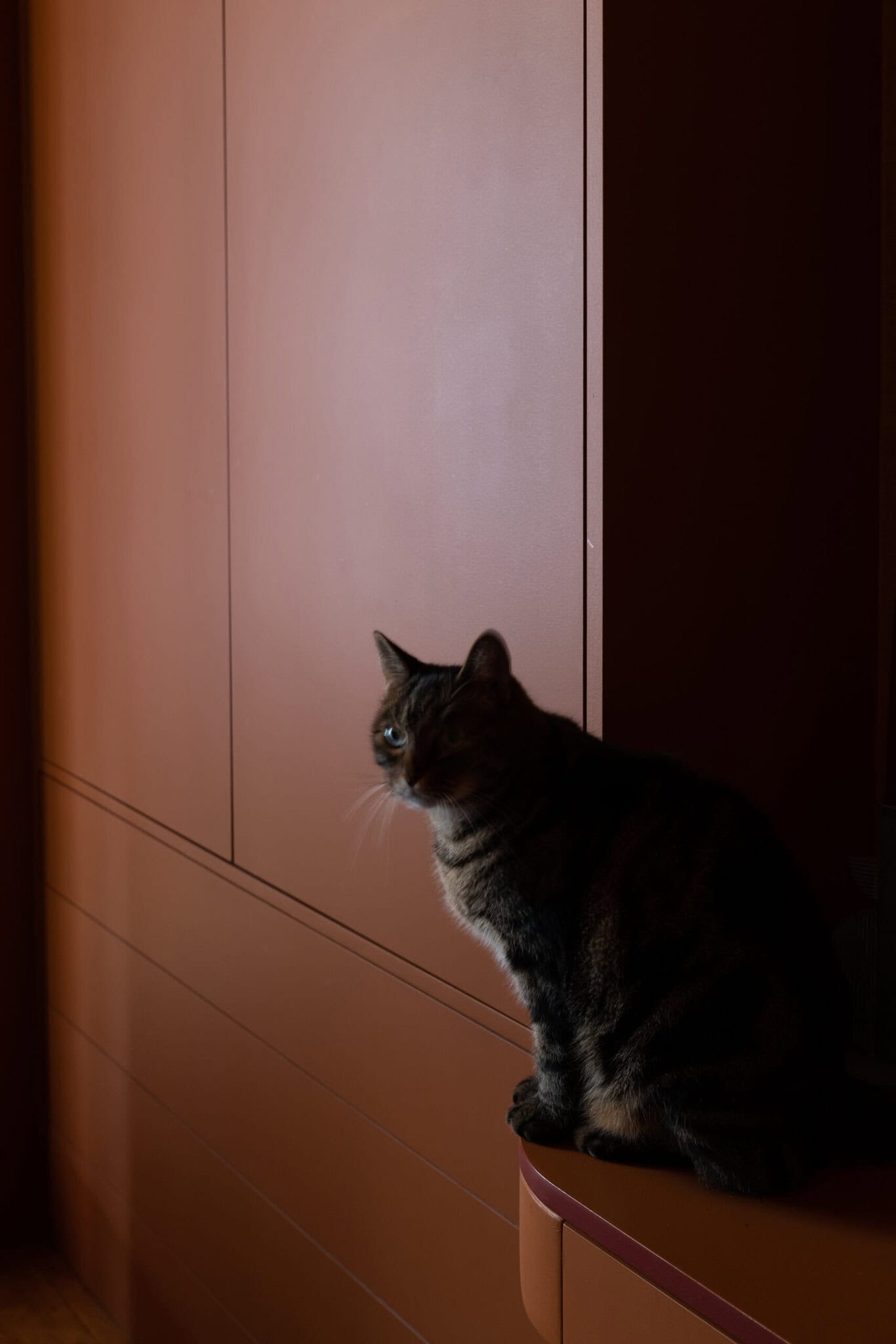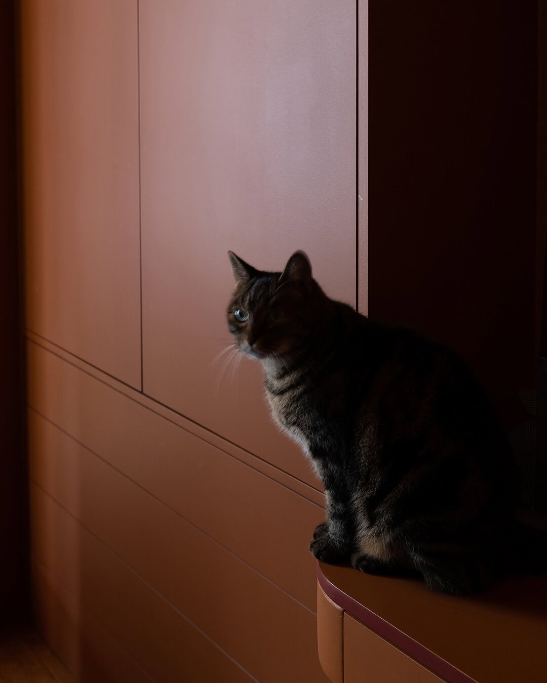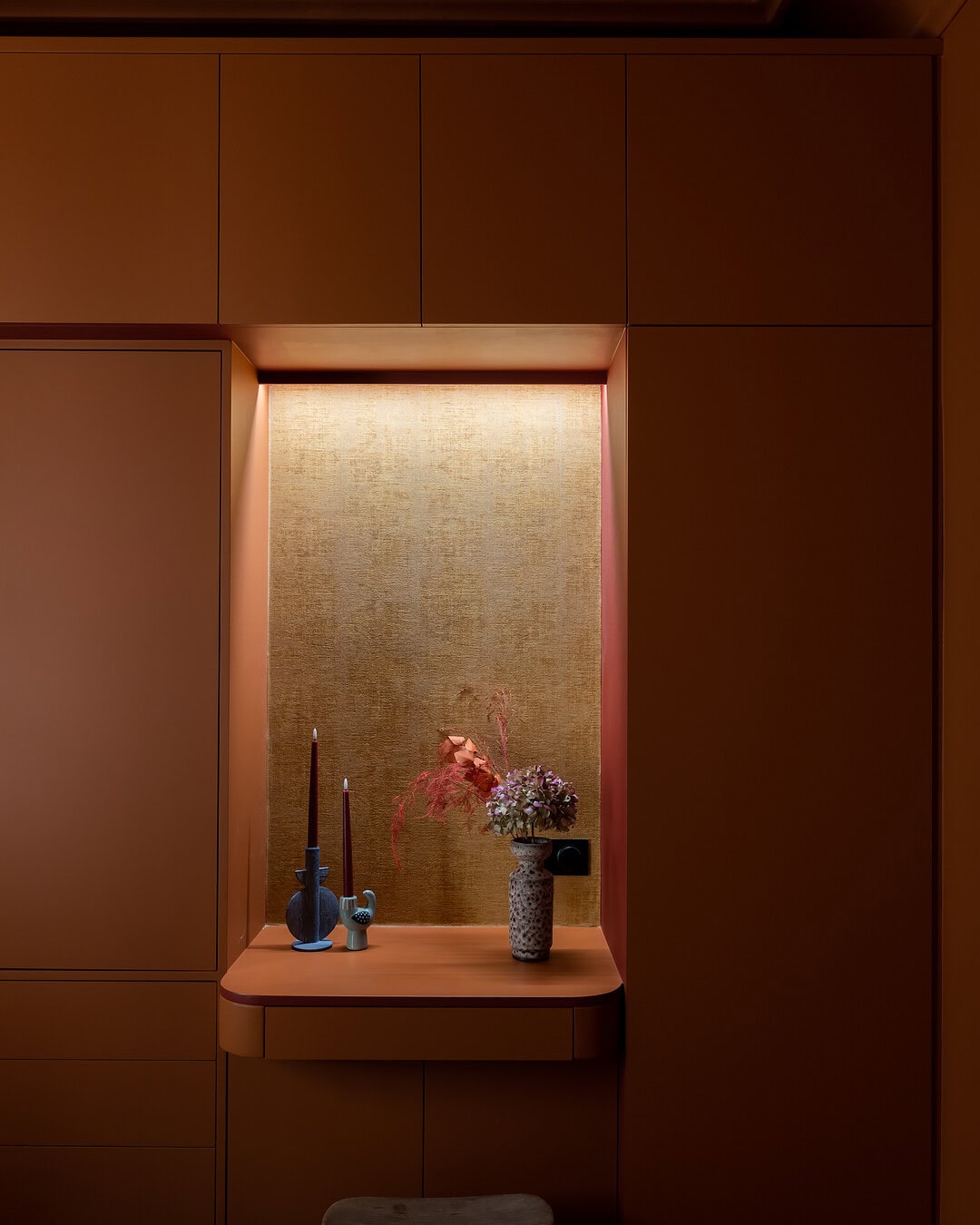 Le projet a inclus le dessin des placards, le choix des revêtements muraux, la sélection des teintes, des matériaux et des finitions, ainsi que la conception de l’éclairage.
